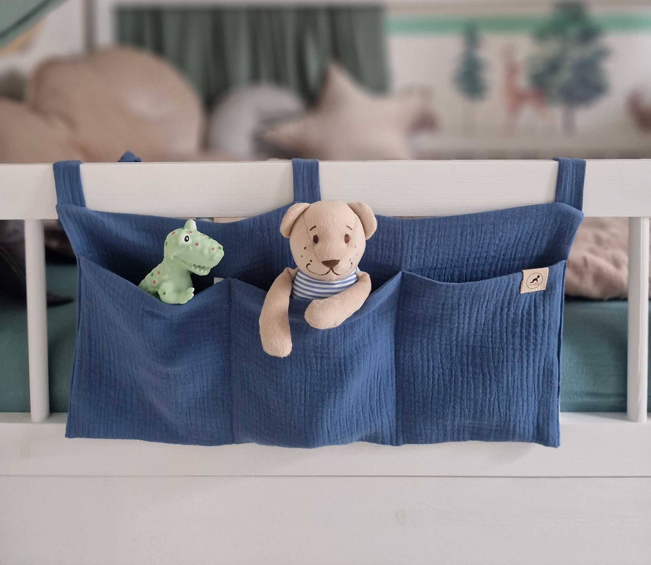 Mušelínový kapsář/organizér na postýlku - 3 kapsy - OCELOVĚ MODRÝSkladem389 Kč/ ks321 Kč bez DPH