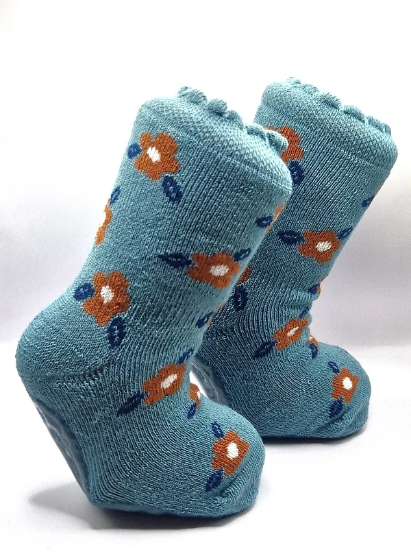 Protiskluzové dětské ponožky - SVĚTLE TYRKYSOVÁ A KYTIČKY